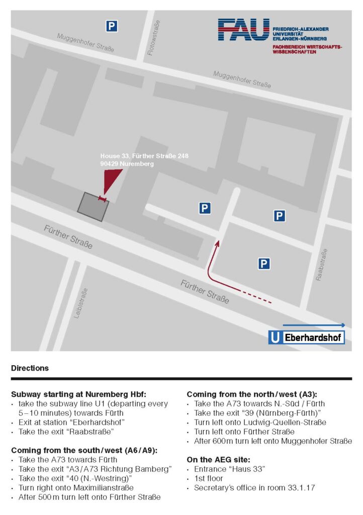 - Haupteinfahrt: Fahren oder gehen Sie über die Haupteinfahrt der Fürther Straße 244–248 auf das „Auf AEG“-Gelände.